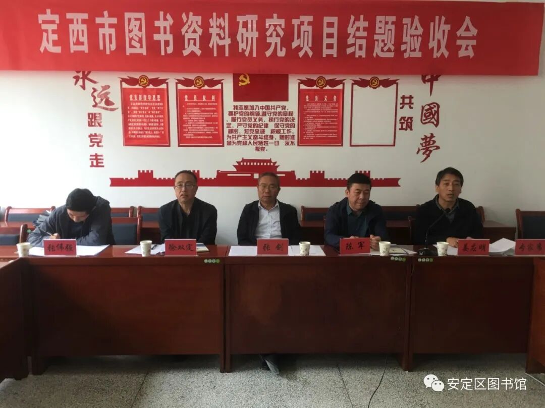 9月3日,“定西市图书资料研究项目结题验收会”在安定区图书馆召开。定西市文体广电和旅游局副局长张剑,甘肃省图书馆副馆长、图书资料研究馆员陈军,甘肃省古籍保护中心主任、图书资料研究馆员徐双定,市融媒体中心副主任、高级记者姜应明,定西市文体广电和旅游局公共服务科科长张伟强组成验收委员会,定西市安定区文体广电和旅游局局长陈永刚,副局长张云以及项目主持人和部分参与人员参加了会议。会议由陈永刚同志主持。