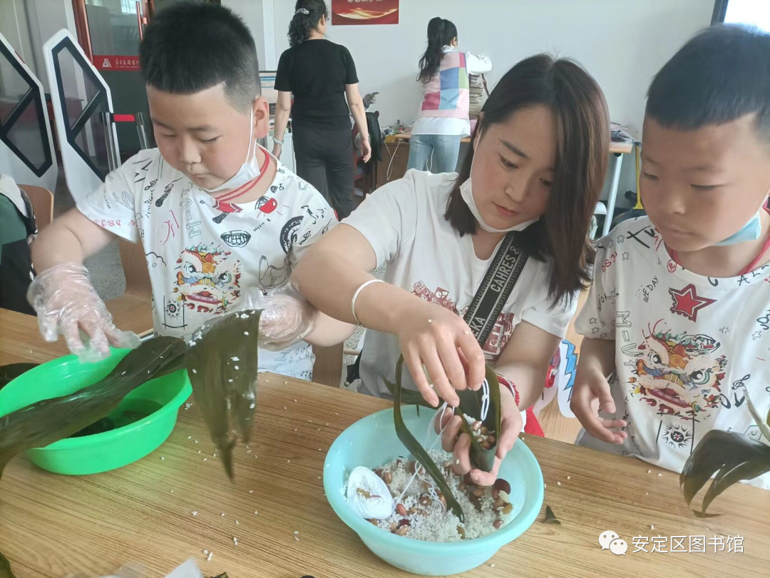 五月初五,是我们中国文化中的传统节日--端午节。每一年的这一天,许多人家都会包粽子,许许多多不同味道不同种类的粽子,都会在这个粽香的季节纷纷涌现。为了弘扬民族精神,传承端午节传统文化,让少儿在动手实践中感受悠久历史文化,安定区图书馆6月3日,举办“喜迎二十大·端午粽飘香”亲子包粽子活动。